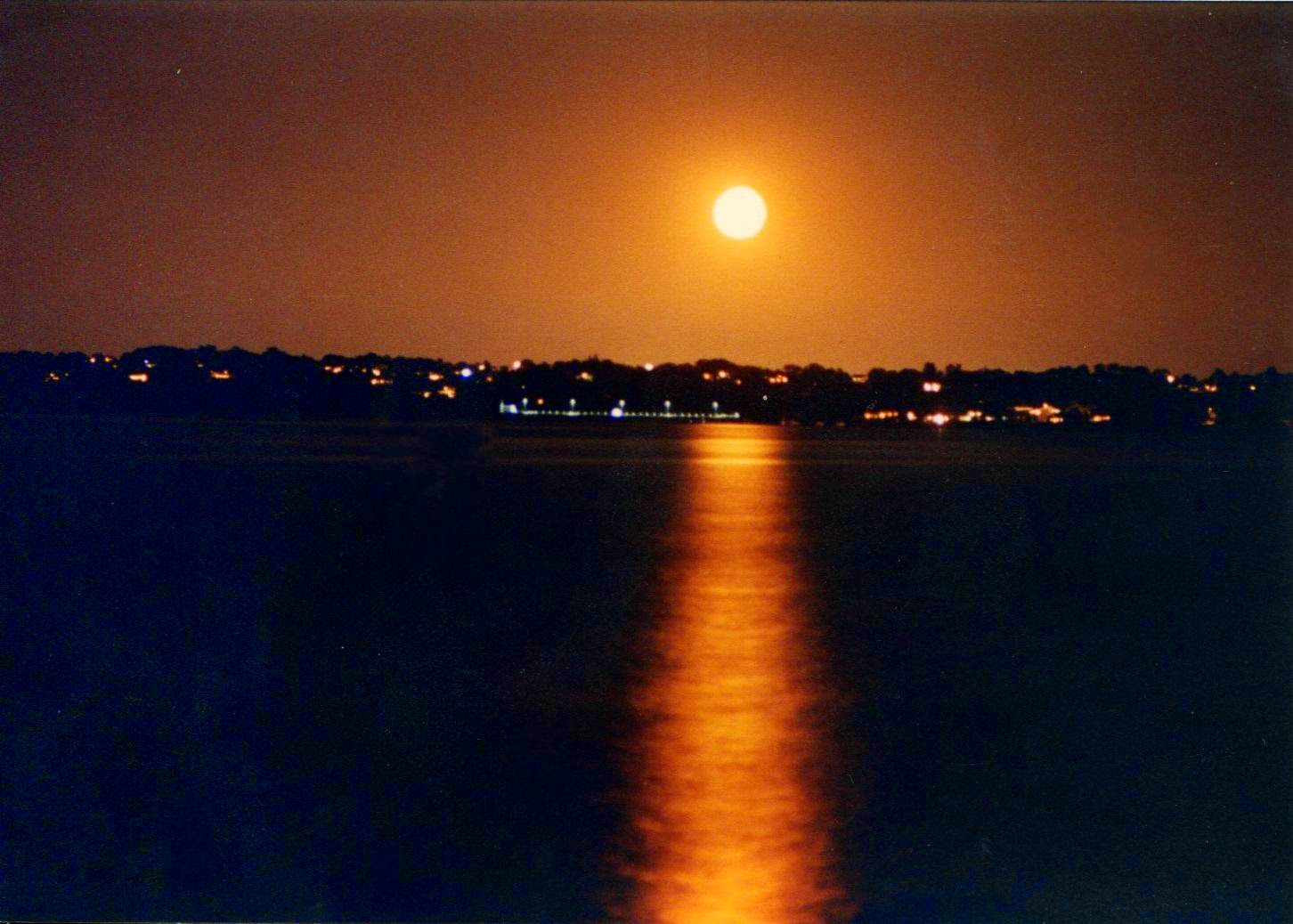 Moon Rise over Portsmouth, R.I. (Taken from Prudence Island,R.I.)