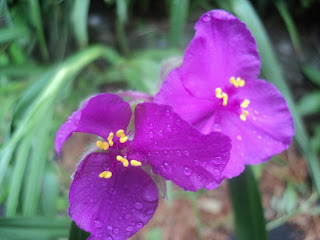 Spiderwort flowers with Raindrops On them,